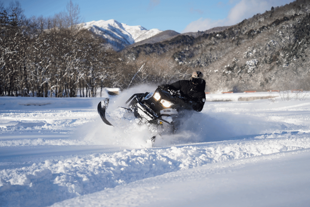 スキー場以外では滅多に目にすることのない「スノーモービル」。実はアクセルとブレーキだけのシンプルな乗り物。インストラクターがしっかりとレクチャーし、ツアーも一緒に出掛けるので初めてでも大丈夫‼ 大自然はすぐそこ!